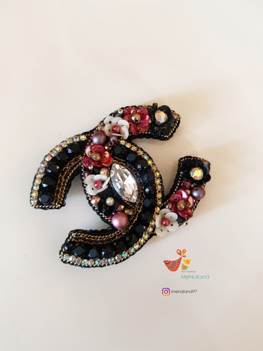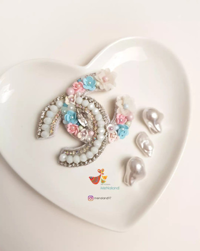 گلسینه جواهردوزی حرفM پروانه ای