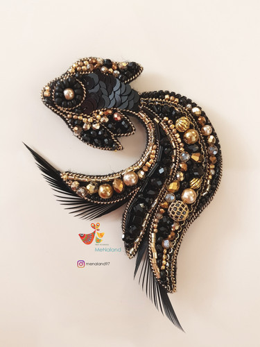 گلسینه جواهردوزی ماهی فاخر با مروارید پرورشی