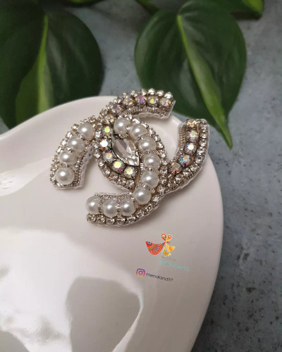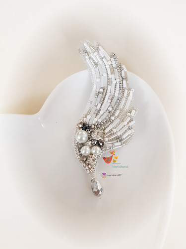 گل سینه شنل جواهردوزی سفید