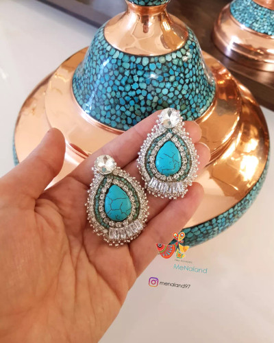 گوشواره جواهردوزی فیروزه و نگین