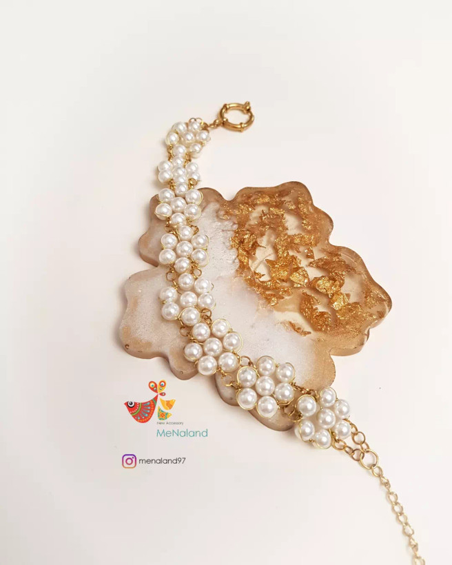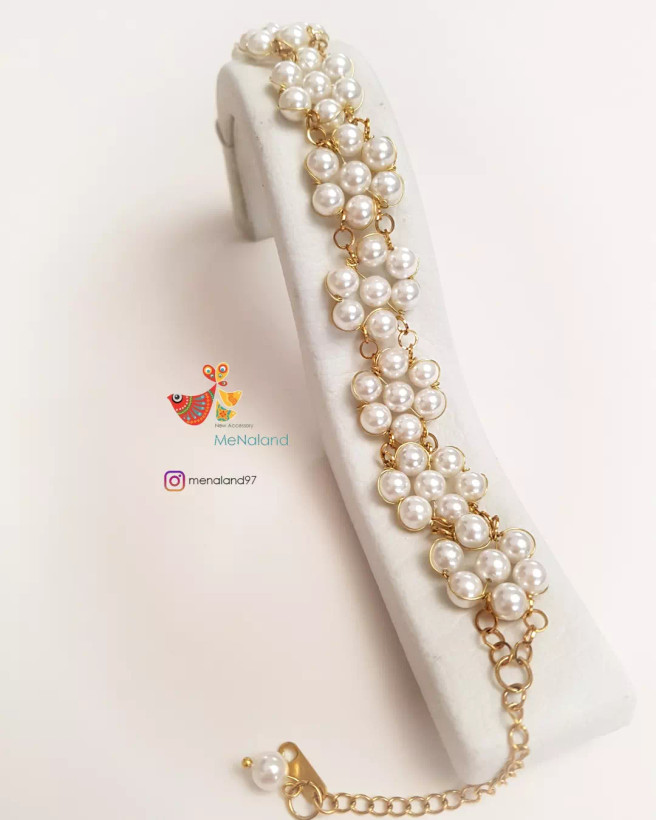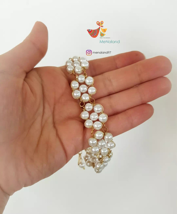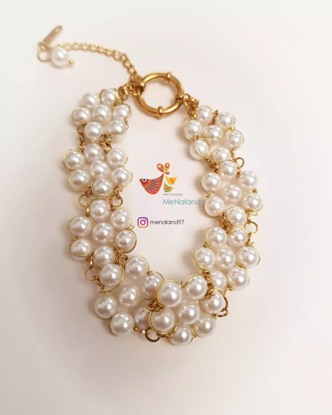 دستبند مروارید شل دستساز با زنجیر و قفل و مفتول استیل رنگ ثابت