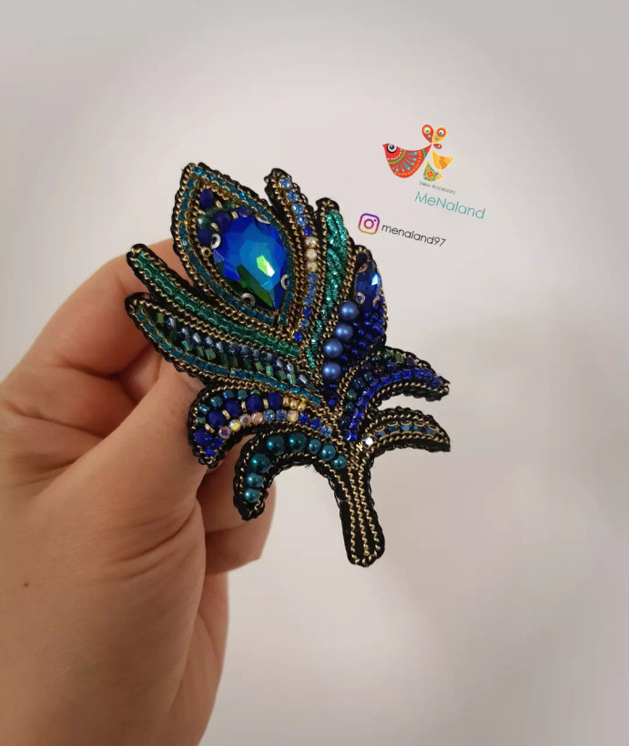 گلسینه جواهردوزی پر طاووسی