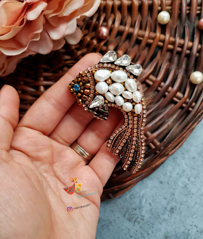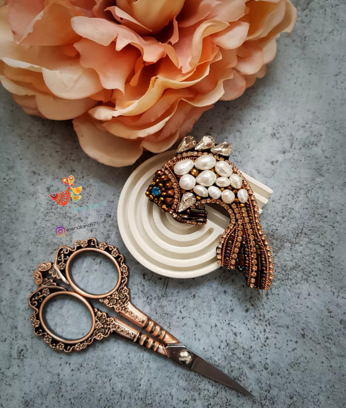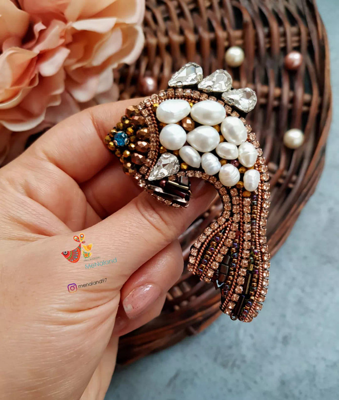 گلسینه جواهردوزی ماهی فاخر با مروارید پرورشی