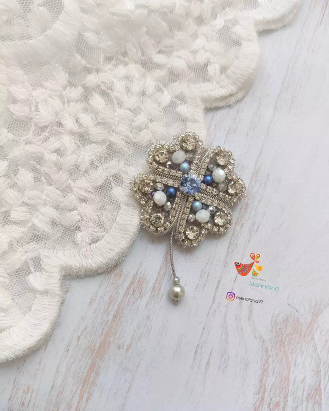 گلسینه جواهردوزی شبدر نقره ای آبی